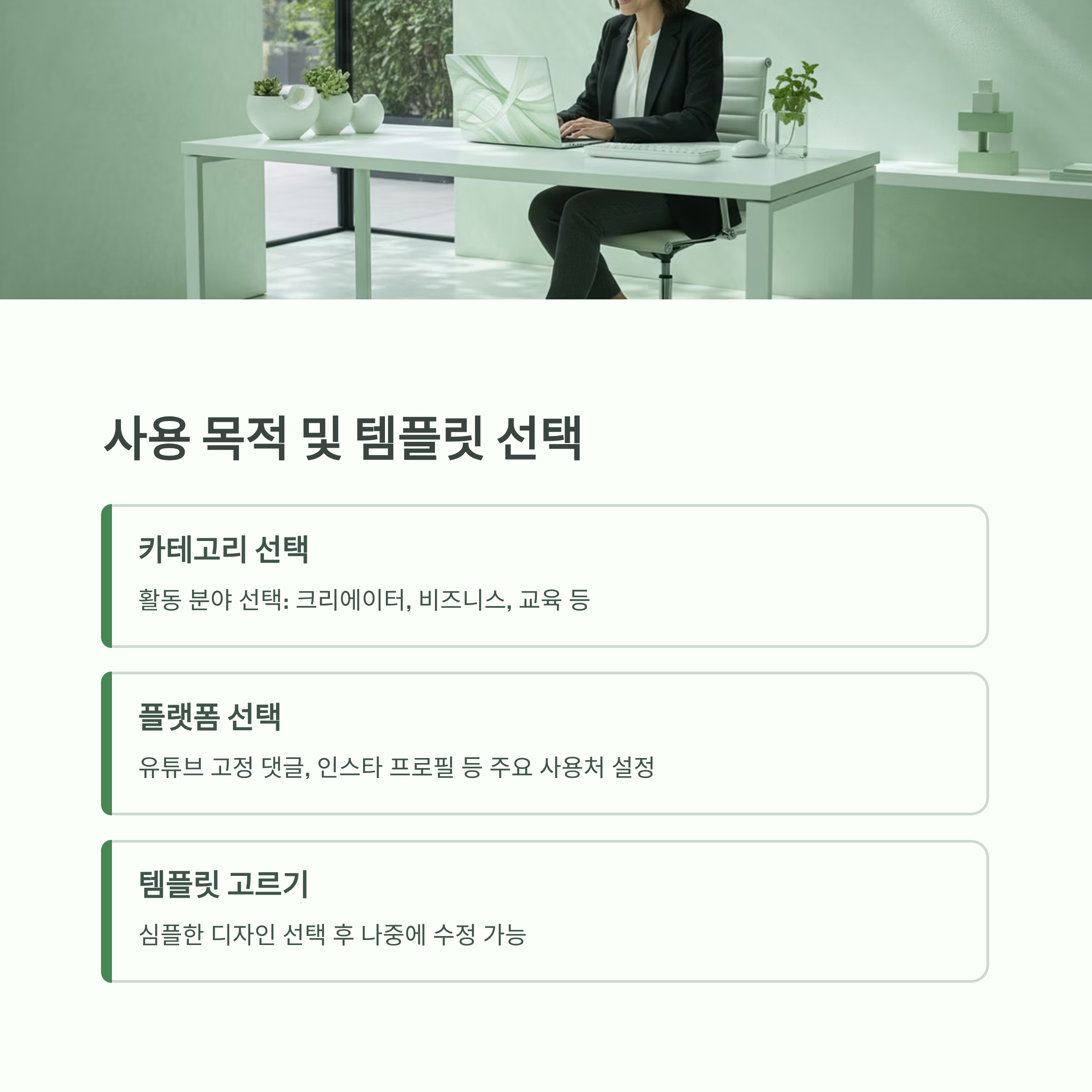 - 카테고리 선택: 본인의 활동 분야(예: 크리에이터, 비즈니스, 교육 등)를 선택합니다.
