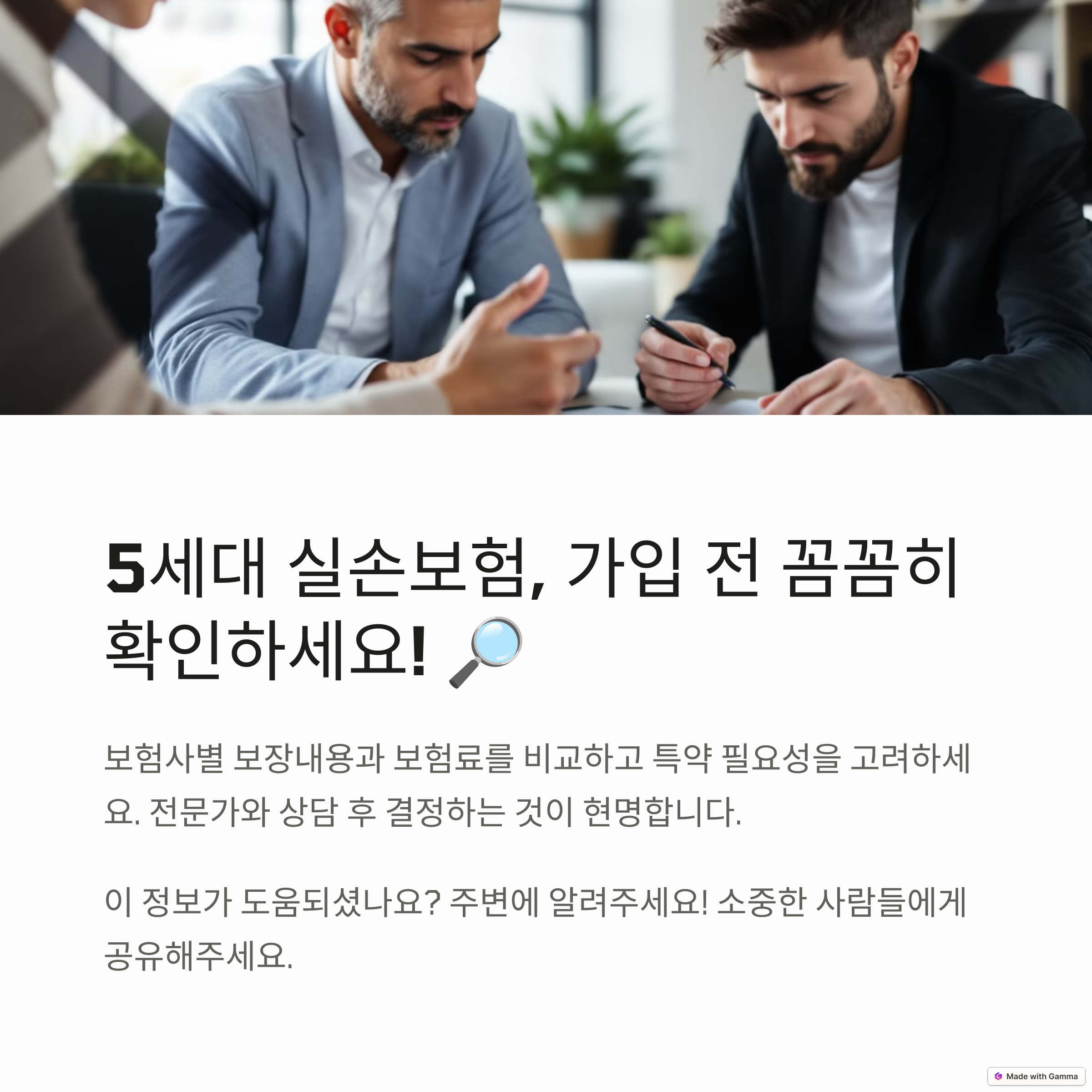 5세대 실손보험은 중증질환 중심 보장, 합리적 자기부담, 낮아진 보험료 등 다방면에서 개선된 보험 상품입니다. 앞으로는 비급여 남용 억제뿐 아니라 필수의료 중심의 건강 보장을 실현하는 실질적 제도로 작동할 것입니다. 가입자 입장에서는 보장 항목과 조건을 잘 비교하여 나에게 적합한 상품을 고르는 것이 중요하며, 특히 실손보험과 건강보험의 연계를 이해하고 보험 구조를 잘 활용하는 것이 현명한 선택이 될 것입니다.