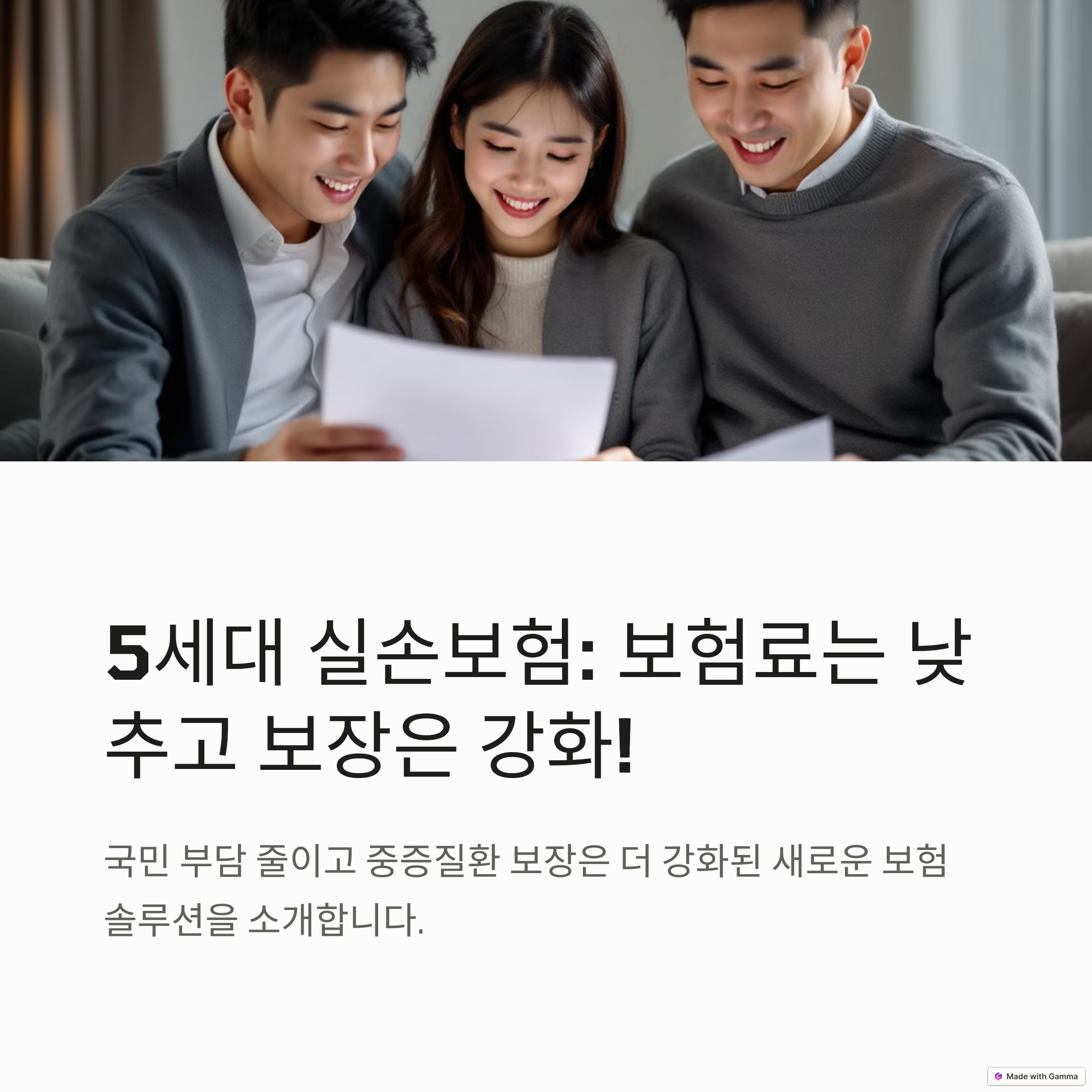 실손의료보험은 수많은 국민이 이용하는 필수적인 보장수단입니다. 2025년 말부터 새롭게 출시되는 5세대 실손보험은 기존의 단점을 보완하고, 보험료 절감과 중증 질환 보장 강화를 핵심으로 등장하게 됩니다. 특히 도수치료, 체외충격파, 증식치료 등 과도하게 소비되는 비급여 항목이 제외됨으로써 실손보험의 의료 남용 방지와 공정한 보험료 체계를 실현하게 되었습니다. 기존 4세대 상품에 비해 최대 50%까지 보험료가 저렴해지는 점 역시 소비자에게 매우 유익한 변화입니다. 또한 임신과 출산 관련 의료비를 보장에 포함시켜 저출생 시대에 맞춘 보장 영역 확대 역시 눈여겨볼 만한 부분입니다. 실손보험을 유지하거나 새로 가입하고자 하시는 분들이라면, 이번 개편 내용을 정확히 이해하고 대비하는 것이 무엇보다 중요합니다. 오늘 이 글에서는 5세대 실손보험의 주요 개편 내용을 꼼꼼히 정리하고, 여러분이 어떤 점을 준비해야 할지 자세히 안내드릴 예정입니다. 꼭 끝까지 읽어보시고, 나에게 꼭 맞는 보장과 보험료를 선택해보세요!
