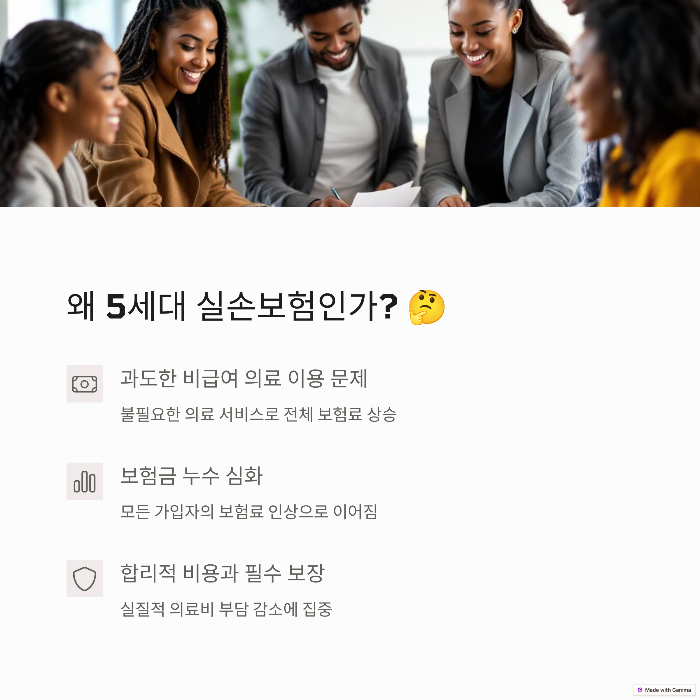 | 5세대 실손보험이란? | 중증 중심 보장과 보험료 절감을 위해 개편된 최신 실손보험입니다. |