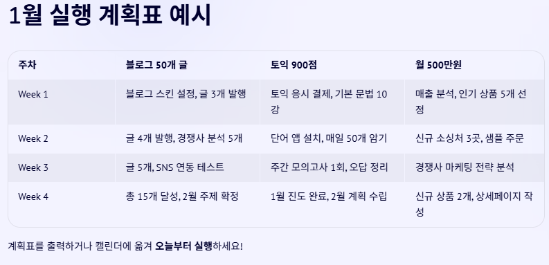 💡 AI 요청 프롬프트 (1월 실행 계획표 생성)