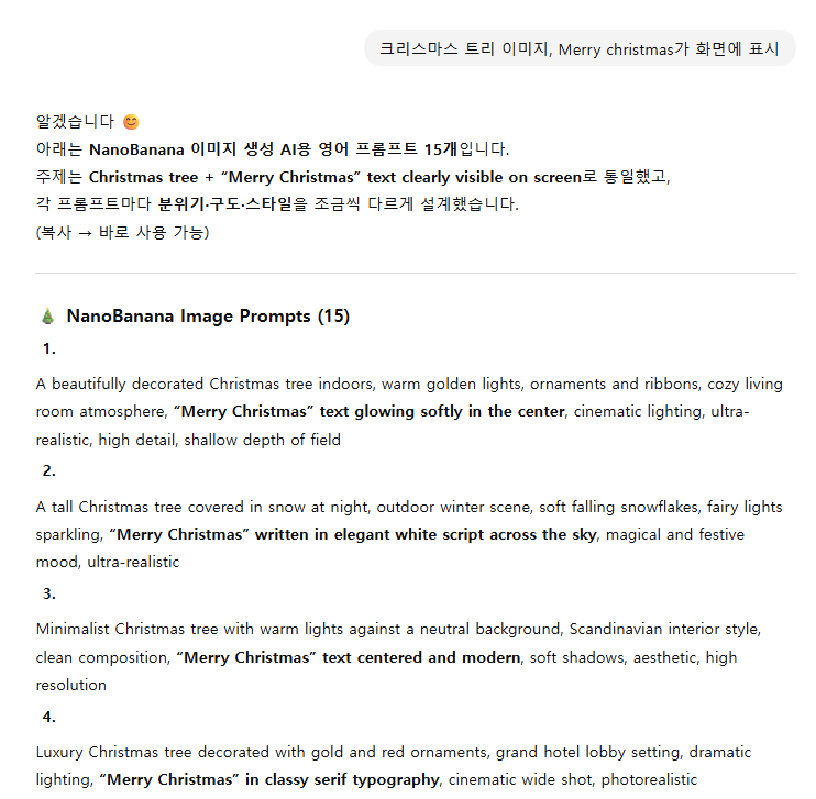 예를 들어, “감성적인 크리스마스트리 이미지”가 필요하다고 할 때,