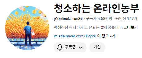 (참고로 해당 내용은 제가 요즘 자주 보고 있는 유튜브 채널 '청소하는 온라인농부' 님의 영상을 참고해서 만들었어요. 너무 잘 보고 있습니다.)